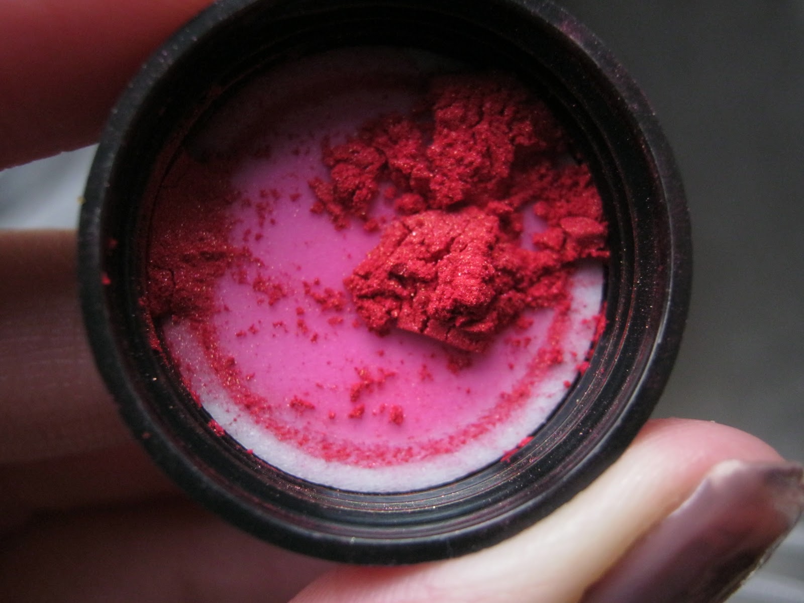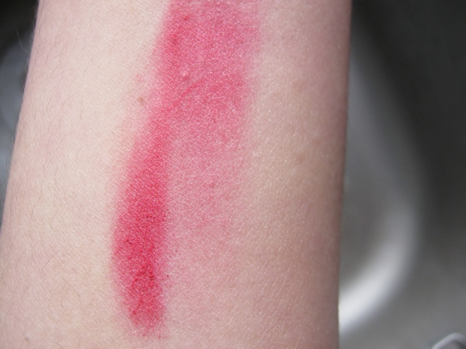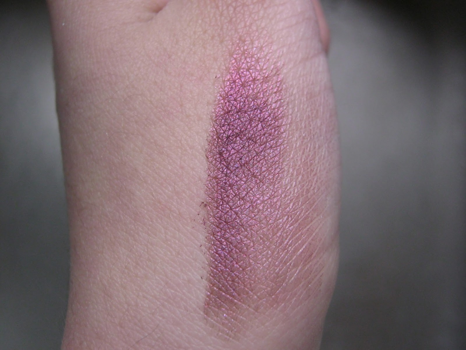 This is a really nice, pigmented dazzle dust that has pink and purple undertones to it. For me this is a color that is unique and is hard to find. I used this on my eyes and it gave a really nice cherry red colour, hence the name! This is one of those hard to find colours, truly different. Sorry about the swatches, they came out a little blurry, I think lol.