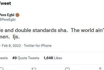 He stated: "This life and double standards sha. The world ain't fair to women. Ijs."
