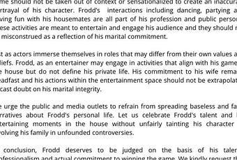 Now, almost these controversies, Frodd's team have released an official statement. They urged fans to take it easy on him. They urge the public to focus on his talents and not use this as a yardstick to judge his commitment to his wife.