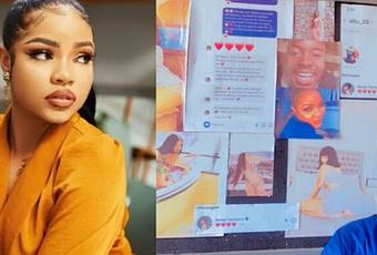 She shared a photo of her friend standing in front of a wall frame which has different photos of Nengi on vacation and one image of himself.