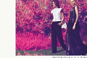 For its spring-summer 2014 campaign... BCBG Max Azria takes inspiration from “Alice in Wonderland” with a set of dreamy images featuring models Stephanie Hall and Charlotte Wiggs. With art direction by Mikael Kangas, the pair poses for Meredith Bruner against the backdrop of colorful seasonal foliage. Stylist Laura Ferrera dresses Stephanie and Charlotte in the brand’s romantic prints and smart separates.