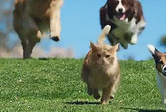 UK mobile company O2's latest ad campaign, 'Be More Dog,' comes in. Starring perhaps the coolest cat the internet has ever seen, the ad encourages us all to embrace our inner lovable mutt.