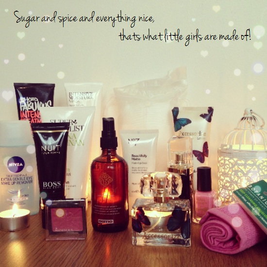 I know I don't normally do beauty posts but after seeing all my dazzling new products lined up together, I thought it was a must. It seems over Christmas and New Year I have doubled my collection of beauty products. I don't usually spend much money on products but I was inspired after receiving some amazing gifts for Christmas (thank you everyone!). Lately I've been watching lots of beauty/make up vlogs and have picked up a few recommended items from peoples top products for 2012. I'm a student and have managed to buy these on my budget so I'm sure you can too. My top recommended products from this haul are definitely Osmo Berber Oil Hair Treatment wit Argan Oil and James Brown London Intensive Moisture Mask. As I have recently gone back to a slight dip dye on my hair its made my ends a lot dryer, but after using these two products my hair is left feeling silky smooth. If your only going to buy one product then I would make sure it's one of these two.(From left to right) Nivea Extra Gentle Eye Make Up Remover, James Brown London Photo Fabulous Intensive Gloss Rescue, Hugo BOSS Nuit Pour Femme Body Lotion, Superfacialist Tea Flower Cleansing Wash, Rimmel Lasting Finish Mono Blush, James Brown London Intensive Moisture Mask, Osmo Berber Oil Hair Treatment With Argan Oil, No 7 Beautifully Matte Shine Free Make Up Base, Accessorize Enchanted Fragrance (part 1 of 2), Hugo BOSS Nuit, Accessorize Enchanted Moisturiser (part 2 of 2), Barry M Nail Paint (in baby pink np119), pink flannel from boots (no longer in stock), Botanics Deep Cleansing Cellulose Sponges.What are your favorite products that your using at the moment? I would love to hear from you.