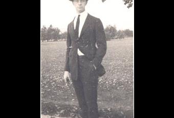 Pauling posing at lower campus, Oregon Agricultural College, ca. 1917.