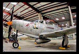 An image of “Fatal Fang” from a trip to the Yanks Air Museum. The successor to the P-39 Airacobra, deliveries of the Kingcobra began in October of 1943 and the USAAF determined that the P-63A was not comparable enough with other frontline aircraft to put into combat. Outperformed at high altitude by the P-51 Mustang and P-47 Thunderbolt, the P-63 King Cobra was relegated to training duty by the AAF. This example was acquired by the Museum in 1978 and restored. Nikon D7100 w/Tokina 10-17mm.