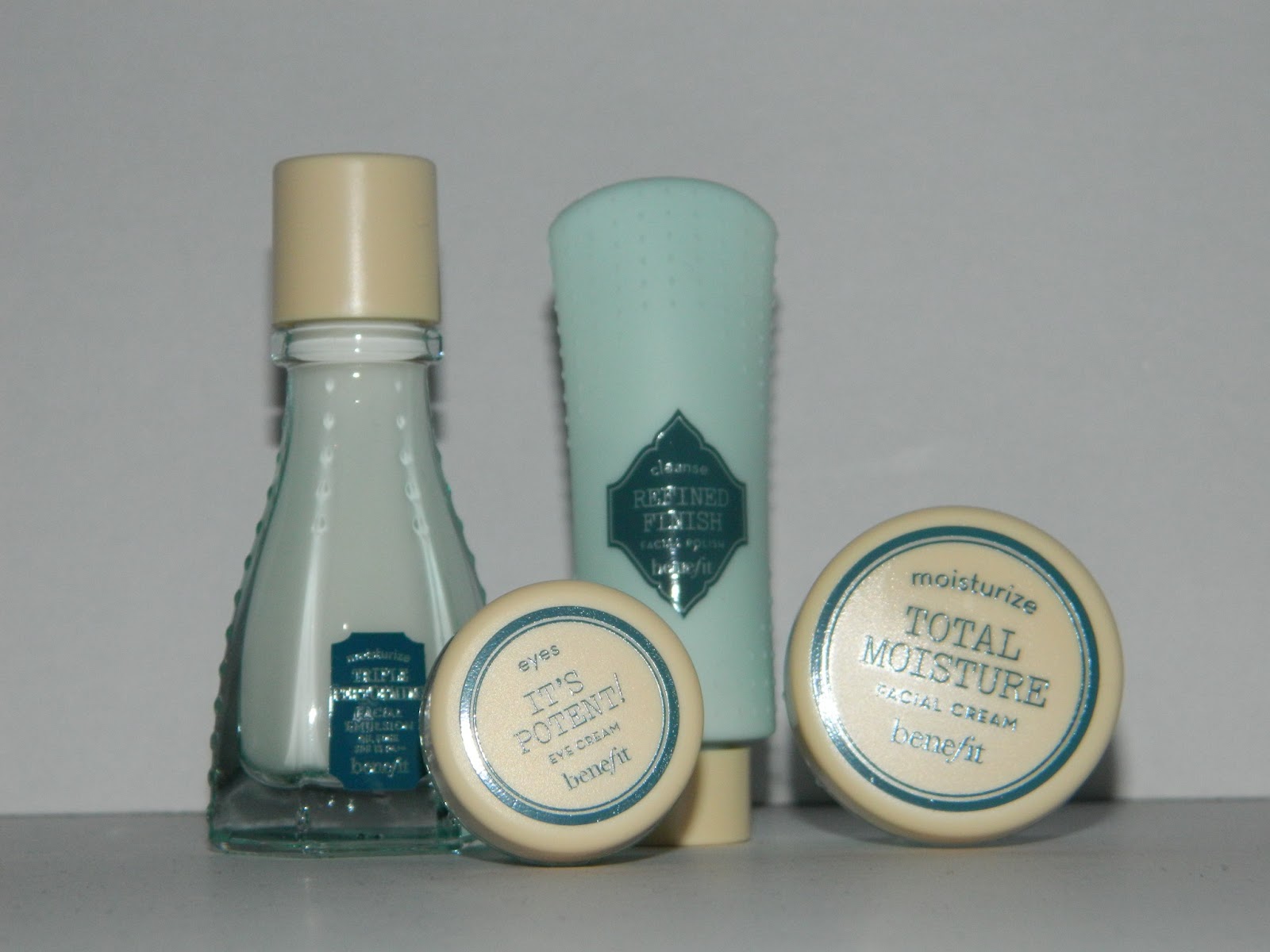 Another Benefit addiction coming my way I feel. I have yet to purchase any full sizes of the skincare but can say just by the samples that I LOVE it! I'm always looking for new skincare as my skin likes to change so often from dry to combination to oily I just can't keep up with it.Triple Performing Facial Emulsion SPF15 PA++ - £19.50When I first saw this I thought to myself what the hell is a face emulsion?? If I'm correct I believe it's a lighter option of a face cream. Most dry skin sufferers prefer a thicker cream as they feel it's doing more than the lighter option of a emulsion. As I suffer from majority dry combination, my T-Zone suffers from a tad of oil so I shall be using this on just that. It hydrates, protects and comforts the skin with a oil free, lightweight formula.Refined Finish Facial Polish - £17.50I love how Benefit haven't gone for the common usual names like exfoliator instead they call it a face polish, it makes the product stand out for me. This is to be used 1-2 times a week after cleansing to brighten the complexion. It exfoliates to purify the skin and help minimize the appearance of pores to reveal your skins natural radiance. I haven't got round to trying this yet but can't wait as I love the feeling after exfoliating.Total Moisture Facial Cream - £26.50This is by far my most favorite product from their skincare range so far. A moisturizer is the one product I find hardest to find one to suit me perfectly. And since my skin is always changing this adds to the hunt of the perfect moisturizer. But since using Benefit's total moisture my skins condition has improved quite significally. It provides concentrated and long term hydration for a refreshed complexion.It's Potent! Eye Cream - £23.50Now I deserve a slap on the hand as when it comes to eye creams I've never really bothered with them. But I now am definitely seeing the side effects of not using one. I've noticed I am getting bigger bags (this could also have to do with starting work at 5am!) and I'm getting dark circles now. I'm definitely going to try this out and see if it makes a difference. It's Potent helps fade dark circles and helps smooth fine lines for brighter younger looking eyes.All items available in full size from the Benefit site here.Have you tried Benefit's skincare yet? What are your thoughts on it?Follow me on Instagram: CosmeticGirlAdeleFollow me on Twitter: @adele_marie90P.S I've made 100 posts!!