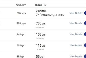 Jio currently has five 2GB/day data plans to offer out of which two of them are annual packages which we’re not going to talk about. The other three plans offer 2GB/day for 28 days, 56 days, 84 days respectively.