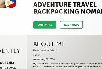 And now, I'll be joining again in another contest but this time it's no longer about writing however it is all about popularity. By means of formal expression of your preference for a candidate like me - simply by voting. I know that I am not yet popular online compared to other contestants but I am still trying to be one of the 16 selected bloggers that will fly to different countries.
