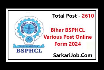 - Bihar BSPHCL Various Post Online Form 2024 रिक्ति 01-04-2024 से 30-04-2024 तक।
