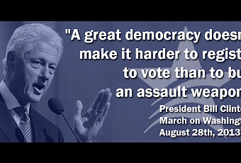 Bill is right. Registering to vote should be one of the easiest things to do in a democracy -- because the more people who are able to vote (and actually exercise that right), the better a democracy works. By the same token, it should be difficult to buy a gun -- and everyone who does so should have to submit to a background check.While it is good for a society to have everyone vote, it is not good for some people in that society to have access to a gun (and the Supreme Court has recognized that). Restricting those with a criminal record and those who are dangerously mentally ill from buying or owning a weapon is not a violation of the Second Amendment, and neither is restricting certain types of weapons from civilian ownership.