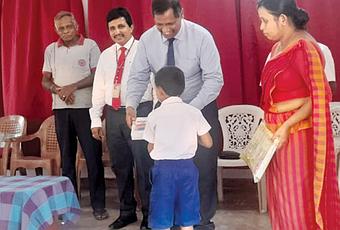 Gampaha People’s Bank branch presented school equipment to hundred and forty students of the Bemmulla, Pitiyegedara Primary School held at the School premises recently. Gampaha People’s Bank Regional Manager G.R.S. Kodagoda is seen making a presentation to a student. Gampaha People’s Bank Assistant Regional Manager Ruwansiri Gnanathilake, Former Assistant Regional Manager Sarath Piries, Gampaha People’s Bank Branch Manager N.R.A.L.K. Ranathunga and Principal Nirosha Amarasena were also present. (Mahanama Vithanage Malwana Group, Susil Ranamuka Gampaha Group and Sudath Pubudu Keerthi Delgoda Group)