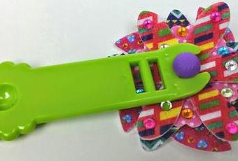 On the left shows one of the Flower Clips stick on. Now you can clip it pretty much anywhere! One your clothes, shoes, hang it on some string.. there are endless ways! On the right shows a Hair Clip placed over the Flower Clip. This makes a bold, bright and beautiful addition to your child's hair!