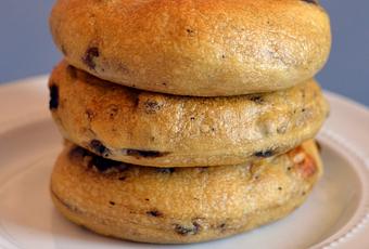 Gently drop the bagels into the water, boiling only a few at a time. After one minute, flip them over and boil for another minute. Remove the boiled bagels to a wire rack.