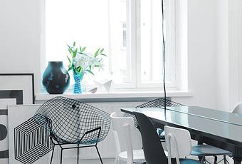 Finnish homeowners Susanna and Jussi Vento prefer a motley set of dining chairs over a coordinated set; that way guests can pick their favorite when they sit. Photo by: Petra Bindel