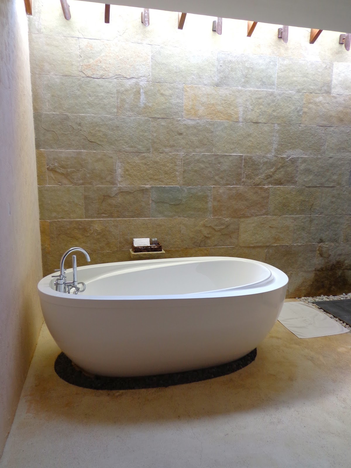 Retiring to my room after lunch, I savored the luxury around me. It was a double bed room with two queen-sized beds, a dresser, flat screen TV, and... I have a fetish for pretty bathrooms. As soon as you enter the room, the bath tub is probably the first thing you'll notice. The bathroom had stone tiles and a slim glass panel above one side of the tub and shower to allow natural lighting during daytime. The zen design definitely relaxes one who steps into the bathroom. I also loved the modern touch on the bed that was seemingly floating.