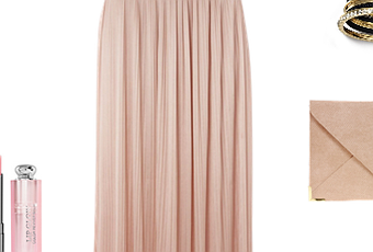 American Vintage Tank ($55.00), Forever21 Circular Charms Necklace ($5.80), Blue Bird Pleated Maxi Skirt from May November ($40.00), Maya Multi Strap Belt ($187.00), Forever21 Colorblock Earrings ($4.80), Robert Rose Bangle Set ($18.00), ASOS Envelope Clutch ($36.36), City Classified Sandals ($19.99), Dior Addict Lip Glow ($30.00), Bobbi Brown Brightening Finishing Powder ($50.00), Jacob Polish in Cashmere ($6.00).