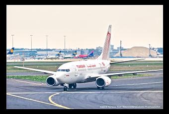 Frankfurt Airport is the 4th busiest in Europe, making it a great place to see foreign carriers in action. Here is a Tunisair 737 taxiing to the gate, one of six in their fleet of 29 aircraft. Founded in 1948, Tunisair is the national airline of Tunisia. Each of their planes carries a baptismal name, in this case Kairouan (a city in northern Tunisia’s inland desert). Regarding airline safety, Tunisair is the only African airline ranked similarly with Lufthansa, Qatar Airways, Singapore Airlines and United Airlines. Fuji X-E2s w/18-135mm.