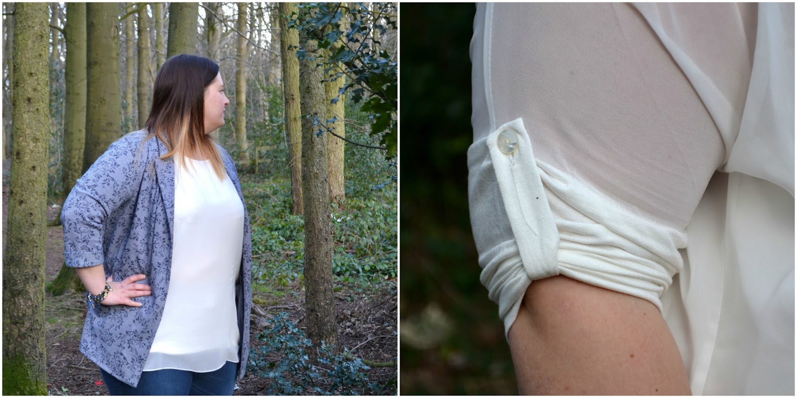 I'm not comfortable in skin tight clothes and tend to go for loose fit designs which don't cling to my 'extra bits'. I'm usually found in jeans, a simple top and some form of jacket or cardigan. The Ann Harvey cream top has a jersey layer underneath which is covered by a light and floaty top layer which is flattering and forgiving for those of use with curves in all the wrong places. It's lovely and cool to wear, and although it has longer sleeves its thin enough to wear during the warmer months.