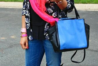 I am glad a few things in the picture, including the pretty blooms, the pink lips and the neon scarf scream spring. Just praying Mother Nature gets the memo soon, and brings us some spring-like weather.