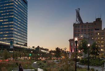The project integrates infrastructure, ecology, and art. I worked closely with Marpillero Pollak Architects, who analyzed the elevated structures on the site and made sense of them in relation to what is on the ground, and who also collaborated on the landscape and furnishings. We also collaborated with Michael Singer Studio, who brought art and craft into the design of everything from permeable pavers to benches. The result is a landscape that operates on an environmental level—cooling the site, filtering storm water, reducing noise, and scrubbing the air—but also on an artistic level.