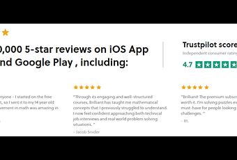 Most of the online reviews of Brilliant.org are very good. People often talk about how well all of the courses on Brilliant.org are made to be like games and how great the customer service is on the platform.