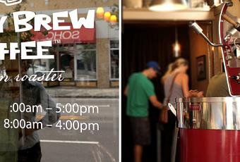 Upon opening the door to Buddy Brew, one is confronted with a bright, red, coffee-roasting apparatus. It’s a thing of beauty and an amazing sign for the coffee one is about to consume.