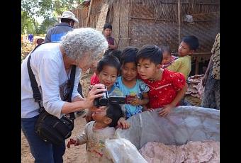 Inle Lake, which measures 22 by 15 miles, has 17 villages with houses built on stilts. Some local people farm tomatoes, gourds or beans on floating islands. Others make a living on the water, balancing their dugout canoes while fishing with bamboo spears and conical nets. Multi-generational families live together and everyone pitches in. Babies feel secure swaddled in a carrier on their mother’s back or are cared for by grandmas and sibling but a few years older. The family works together and children as young as three learn to row the boat with one foot. Unfortunately many leave school after 4
