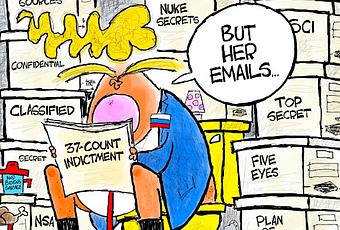 But Her E-Mails!Political Cartoon is by Clay Jones at claytoonz.com.