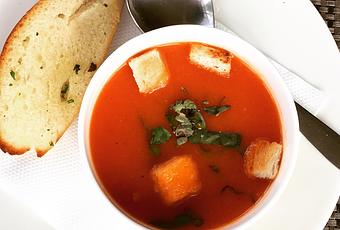 Putting all thoughts of homemade lunch to the side, Snubnose and I simply tucked in. We started with a rather boring dish – tomato soup.