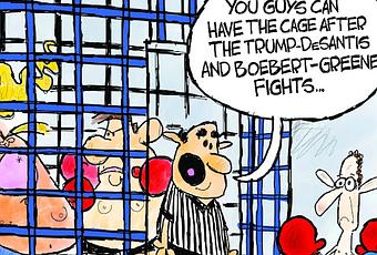 Cage MatchesPolitical Cartoon is by Clay Jones at claytoonz.com.