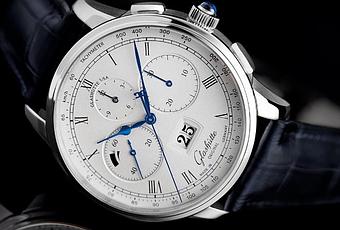 Glashütte Original reveals two new watches, part of the Senator Chronograph Panorama Date collection. The one version is a platinum case and hand finished silver dial and the other with a red gold case and lacquered silver grained dial. The watch displays the signature symmetrical harmony of the manufactory’s classic yet contemporary Senator line. The dial presents an elegant 12 hour chronograph counter and the Panorama Date display with black numerals on an ivory ground at the center of the lower half of the dial. The platinum version is fitted with a blue Louisiana Alligator leather strap and the red gold version with a mat black Louisiana Alligator leather strap.