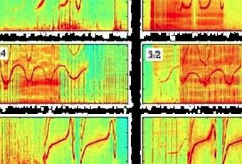 Spectrograms of dolphin vocalizations. Top row are signature whistles; in the middle, signature whistle copies; at bottom, the signature whistles of the copiers. Image: Stephanie L. King/Proceedings of the Royal Society B