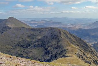 Carrauntoohil Via O Shea’s Gully LoopDescending towards the top of the Devil’s Ladder, with flat-topped Cnoc na Toinne ahead. Image (c) Adrian Hendroff