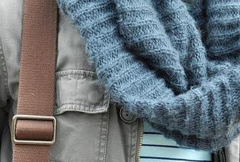 With a blue infinity scarf wrapped around his neck, he definitely isn’t feeling the cold in the morning. Urban Outfitters has the perfect cable knit scarf here. This will be an item you can keep in your wardrobe for years to come. Layer a casual T-shirt under your scarf and to add some energy to your ensemble, pick a colorful matching pant. To top things off, you’ll need a warm jacket — try the Tony Jacket by Andrew Marc.