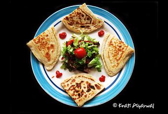 Give your traditional looking flat bread/parantha a different look. And for pasty lovers try this spiced vegetarian stuffing for a change.