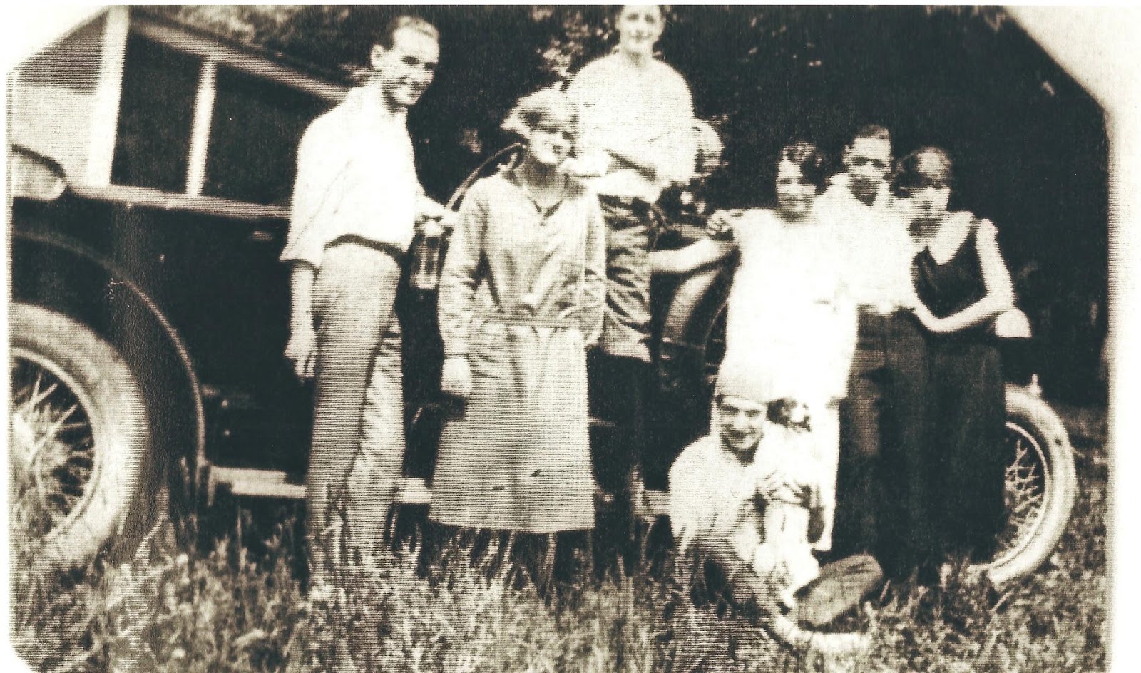 1923, Maybelline's founder and owner Tom Lyle Williams right, with the Shaver family, Betty, Bud and Emery. Left, friend, Ches Haines and Tom Lyle's sister, Eva Williams.