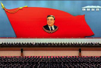 View of the venue of a central report meeting commemorating Kim Il Sung’s 104th birth anniversary (Photo: Rodong Sinmun).