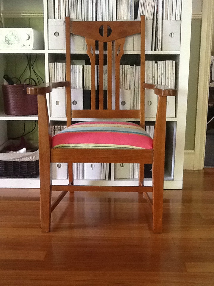 The job of stripping the many layers of paint went to a furniture restorer in Sydney. I had a feeling that this chair was too important to be done by my amateur hand, and so I found an expert who told me when I went to collect my newly revealed chair that the timber it was made from was none other than Australian Silky Oak. I had the timber waxed instead of using varnish because it has such a nicer finish and it feels more gentle to the touch.