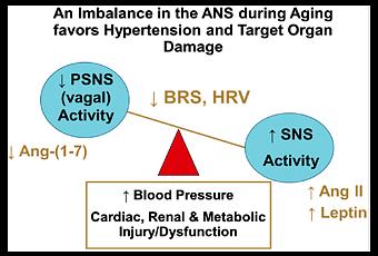 And indeed, this fits with the literature on changes in the autonomic nervous system that occur on aging. If you simply do a google search for "autonomic nervous system and aging" numerous references appear that document how healthy aging is associated with lowered heart rate variability, elevated basal sympathetic nervous activity, and reduction of overall autonomic reactivity of sympathetic and parasympathetic nervous systems. Here is a very recent review, from which I pass on one figure: