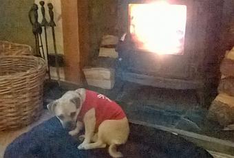 I threw some extra big logs on the wood burner and let them stay in the living room for the night, as she had snuggled in the bed that is currently tucked behind the sofa with big sister Suky at bedtime. Judging by how stiff Suky was when she got out of bed this morning I don't think they moved at all during the night.