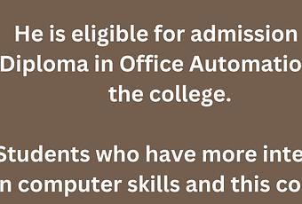 - He is eligible for admission to Diploma in Office Automation in the college.