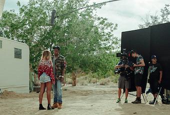 Thursday, June 19, 2014After blessing us with a brilliant movie teaser for the couples duet single “On The Run”, Jay-Z and Beyoncé now let us behind the scenes of the making of the video. From the looks of the pictures, these two are going really far with the badass act. Lol. Check out the interesting pictures released via Life & Times below.