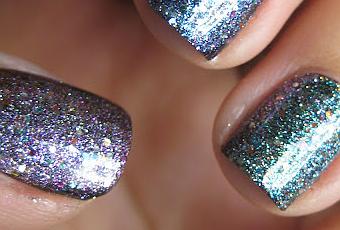 China Glaze Prismatic Chroma GlittersAll of these are shown at one thin coat over one coat China Glaze Liquid Leather. All of them are made up of a duochrome micro glitter base sprinkled with multi-colored medium glitters. These are the colors I see in each of the bases: