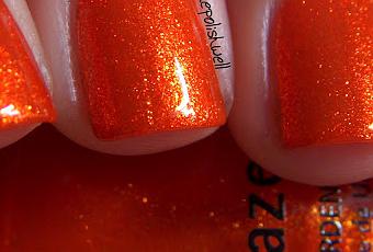 *splutters* Isn't this one insanely gorgeous polish?! Bright red-orange with even brighter gold glass flecks that gives the color incredible depth. Super fiery. Definitely a head-turner. I'm not one to like super bright colors but this was love at first sight.
