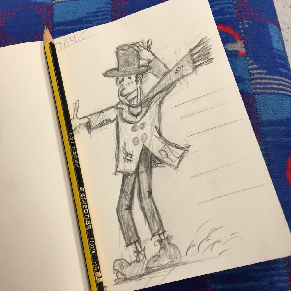 Here's Bob (pictured) whooshing down the slide at Cornhill in a Tube doodle I made on the way to the start of the walk.