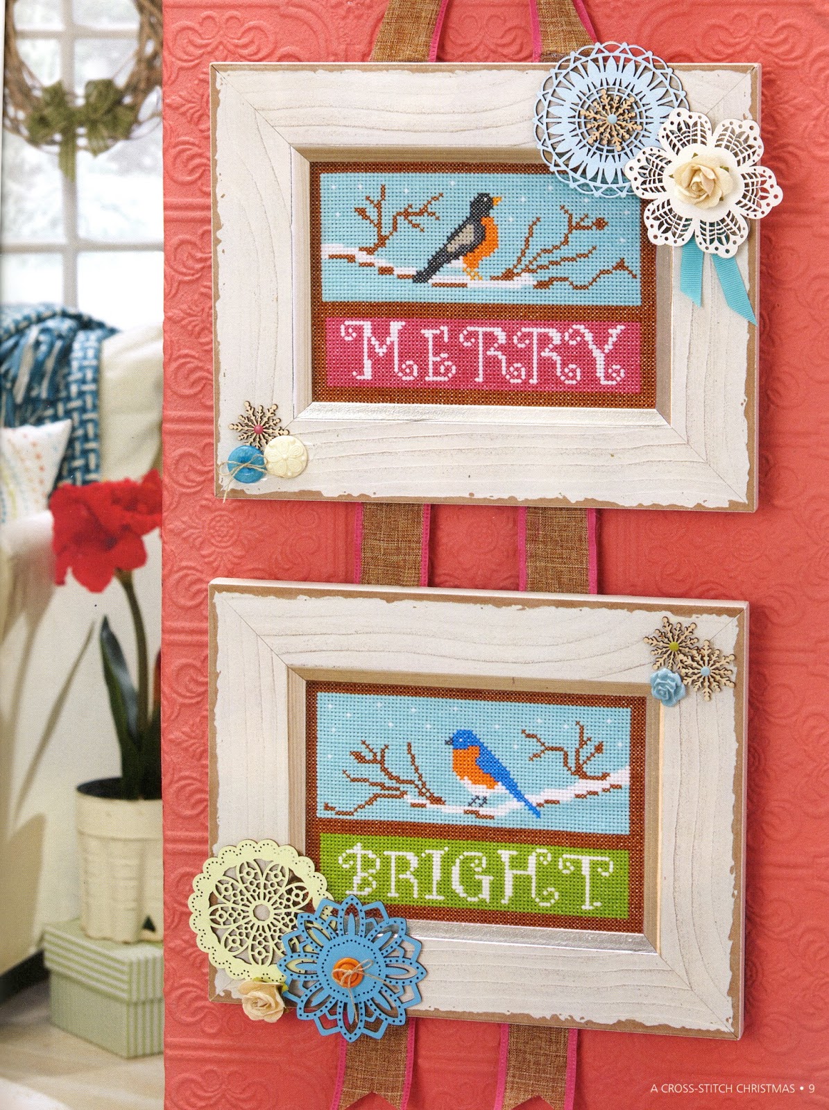 First off is two of my existing needlepoint designs, "Merry Robin" and "Bright Bluebird". I love the adaptation to cross-stitch on these, and the framing is just gorgeous!
