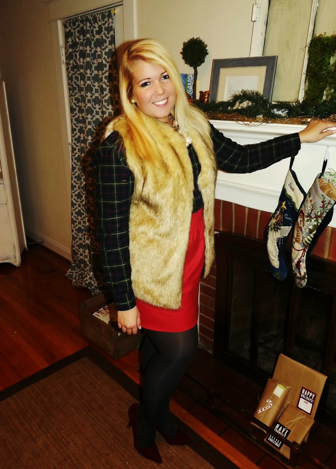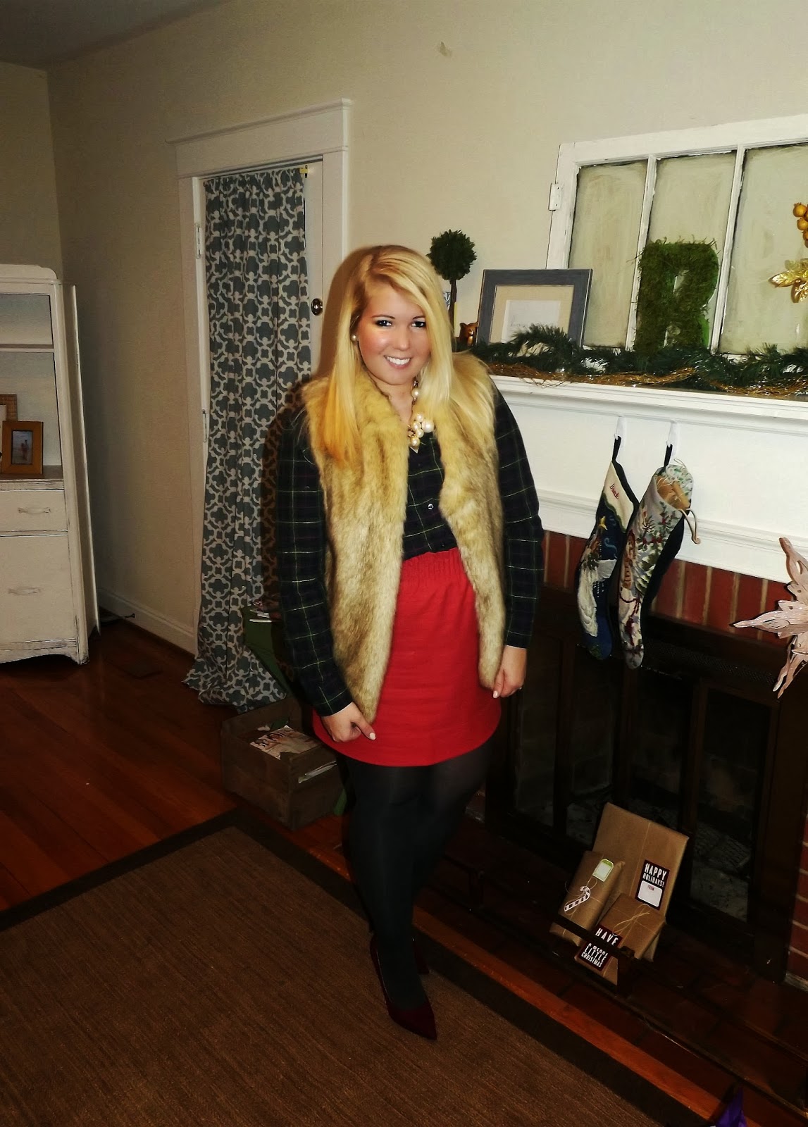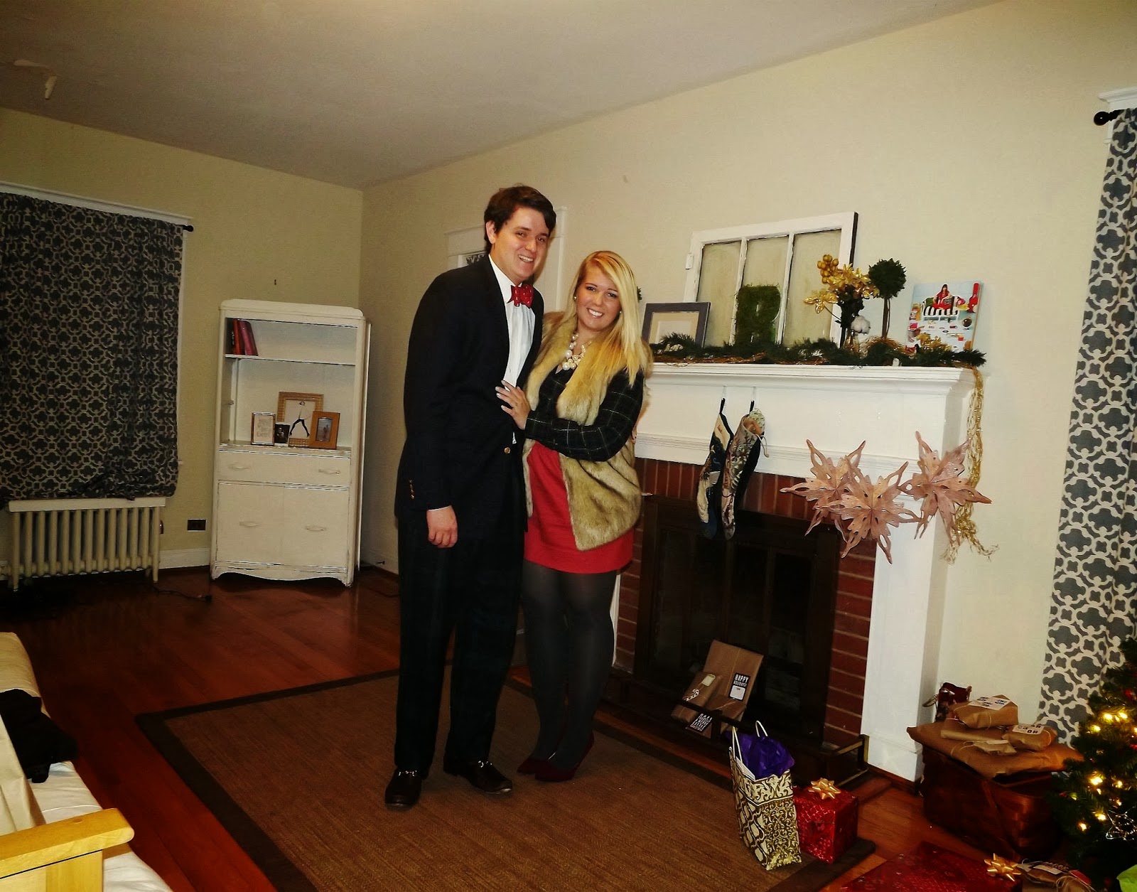Her Outfit: Vest- Ecru, Shirt- Chaps, Skirt- J.Crew, Stockings- Old Navy, Shoes- Target, Necklace- T.J. MaxxChristmas Eve and Christmas Day were quite the success, though it was just the two of us. We went to a celtic christmas eve service at a local baptist church (the first christmas eve EITHER of us have spent in Lynchburg), he got to open a present on Christmas Eve...and he obviously loved the lab wine stopper, and we went to bed late...we were totally trying to catch Santa in the act.