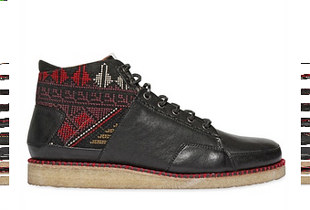 You Footwear Naturally Tanned Leather Low BootsChukka boots are a great in between style. They don't have the extreme height of a tall boot that sometimes can be hard to wear but give a bit more surface area to play on than an oxford. Take this Naturally Tanned Leather Low Boot for You Footwear for example. The tribal woven panels work perfectly for a chukka style shoe; not too much or too little print is shown. This and the aspect of the naturally tanned leather and comfy crepe sole make the good case for a cool seasonal chukka. Available now at LuisAviaroma.com.