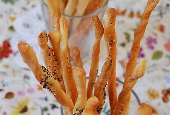 The grissini with fleur de sel and poppy seeds.