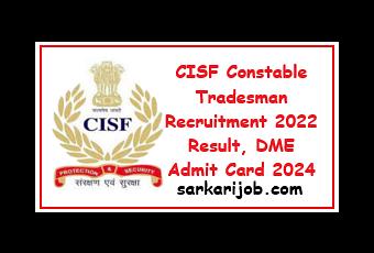Name of Post : CISF Constable Tradesman Result, DME Admit Card 2024 | CISF Constable Tradesman Result, DME Admit Card 2024
